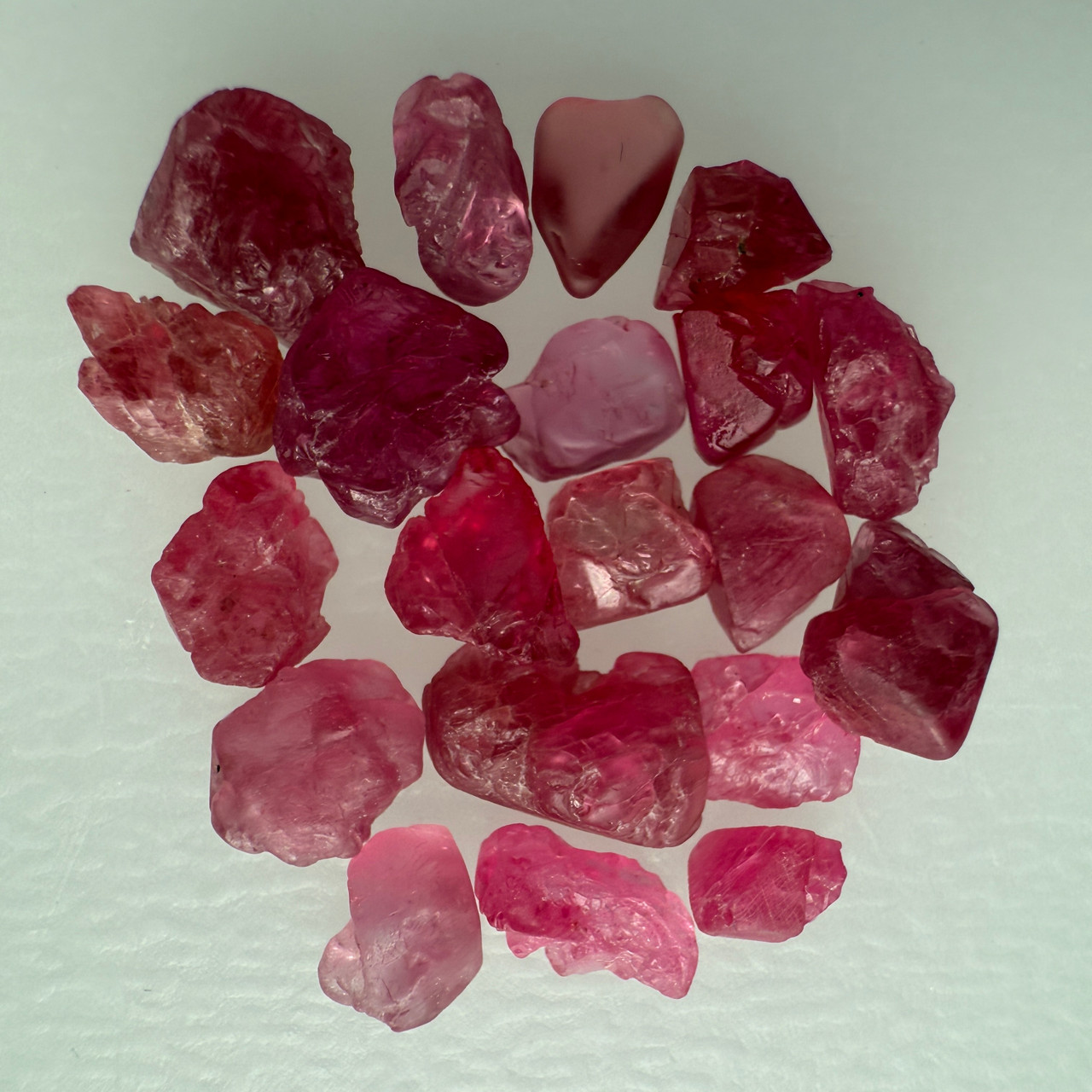 NAME: Natural Spinel Uncut Rough 20 Pieces 22.45 Carats Crimson Red-Hot Pink Color 5A Quality Burmese Mines Raw Gemstone
