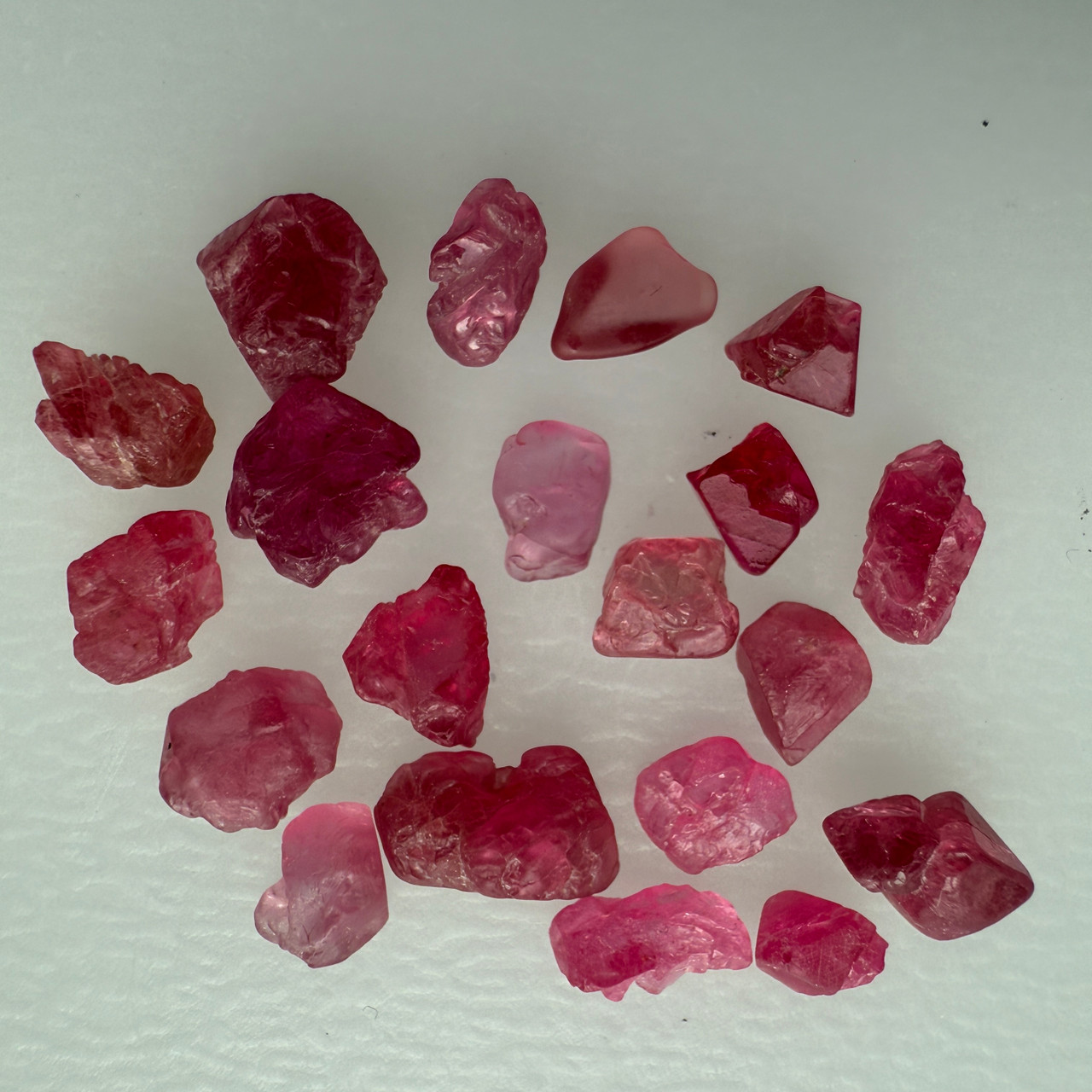 NAME: Natural Spinel Uncut Rough 20 Pieces 22.45 Carats Crimson Red-Hot Pink Color 5A Quality Burmese Mines Raw Gemstone