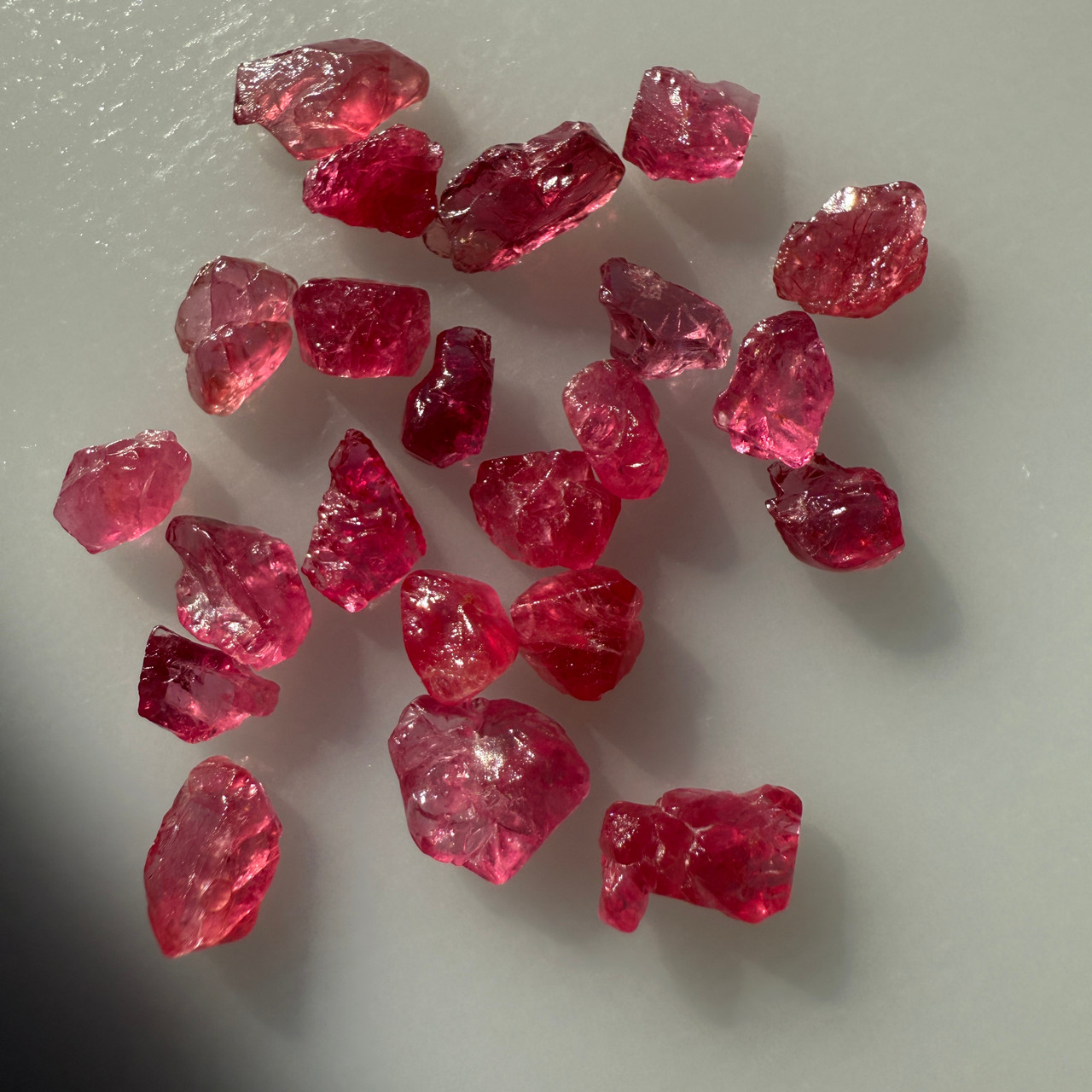 NAME:Natural Spinel Uncut Rough 22 Pieces 24.36 Carats Crimson Red-Hot Pink Color 5A Quality Burmese Mines Raw Gemstone