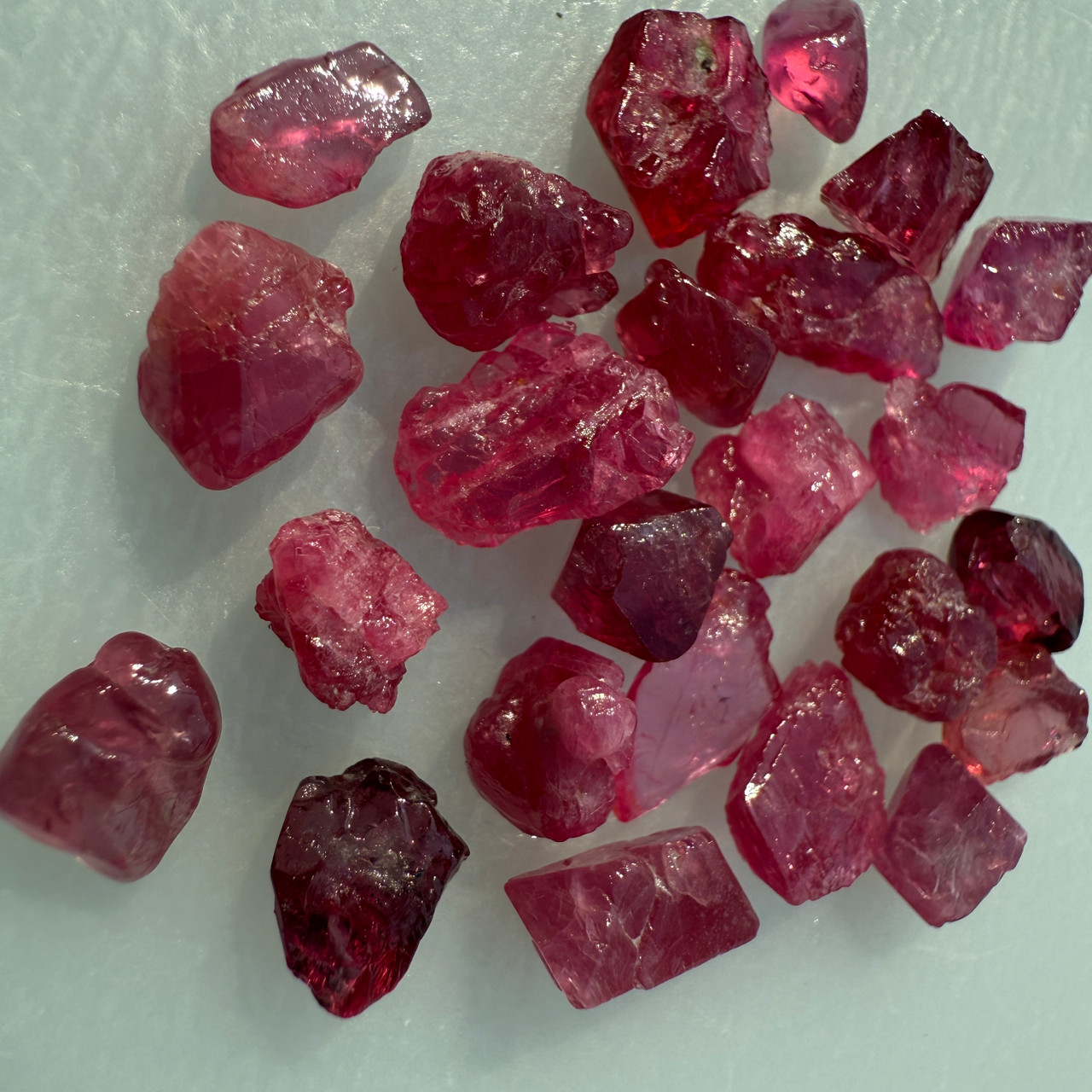 NAME: Natural Spinel Uncut Rough 25 Pieces 42.92 Carats Crimson Red-Hot Pink Color 5A Quality Burmese Mines Raw Gemstone