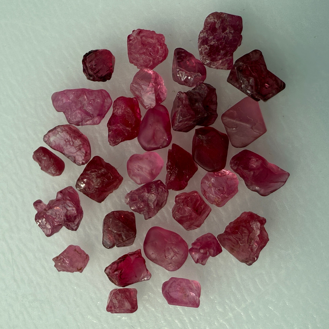 NAME: Natural Spinel Uncut Rough 30 Pieces 25.98 Carats Crimson Red-Hot Pink Color 5A Quality Burmese Mines Raw Gemstone
