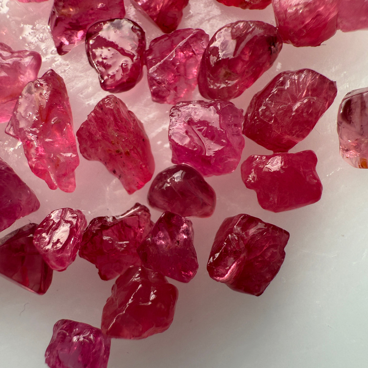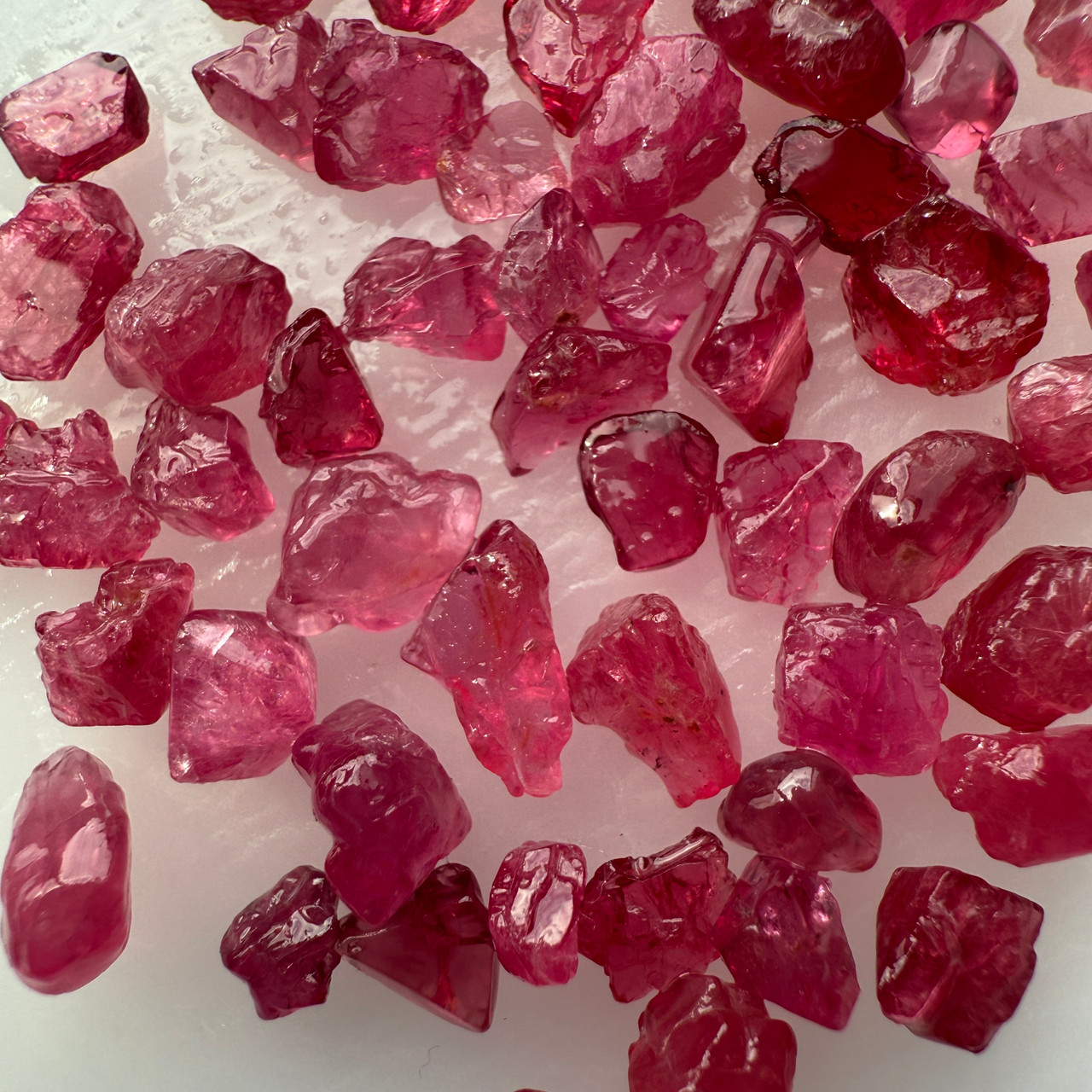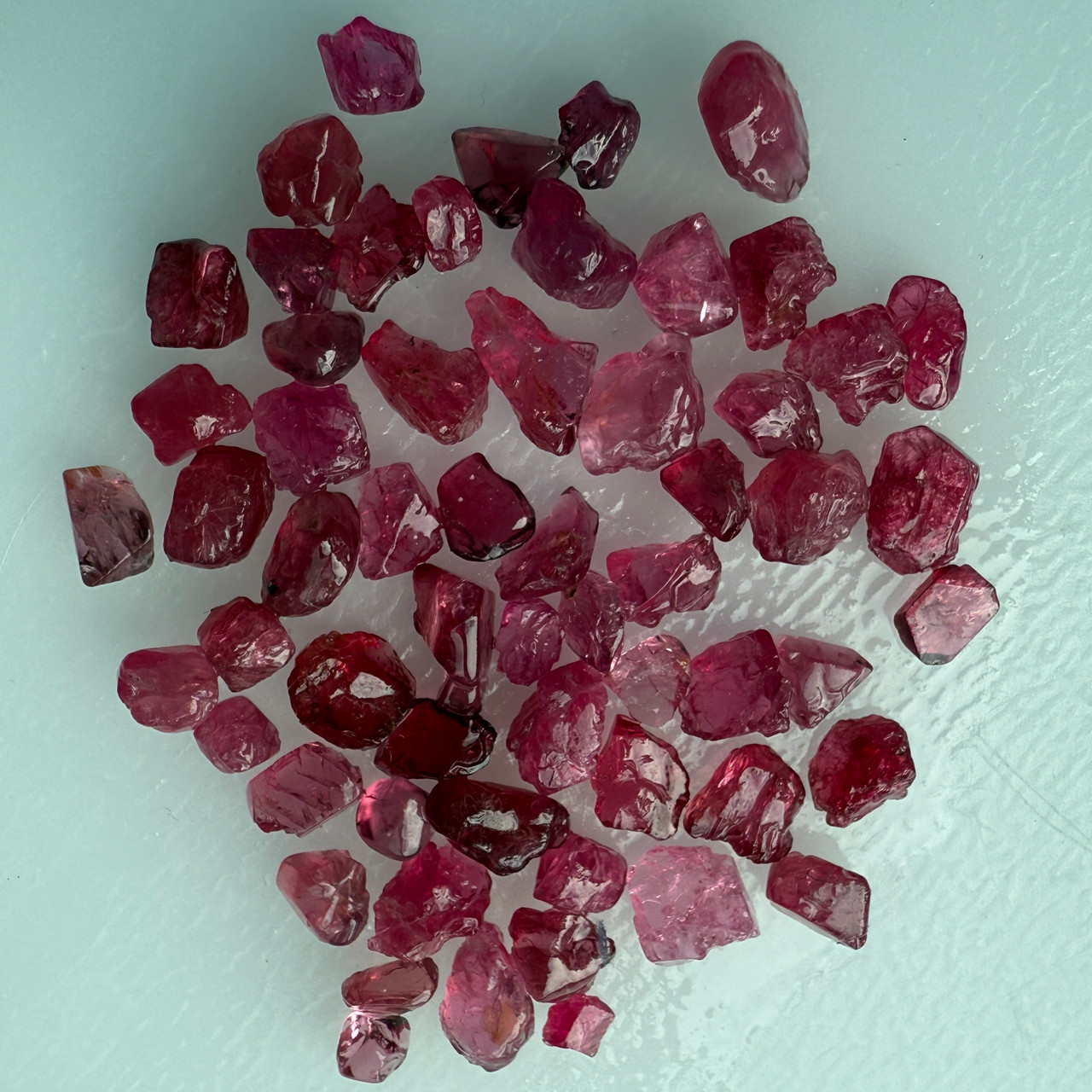 NAME: Natural Spinel Uncut Rough 60 Pieces 57.19 Carats Crimson Red-Hot Pink Color 5A Quality Burmese Mines Raw Gemstone