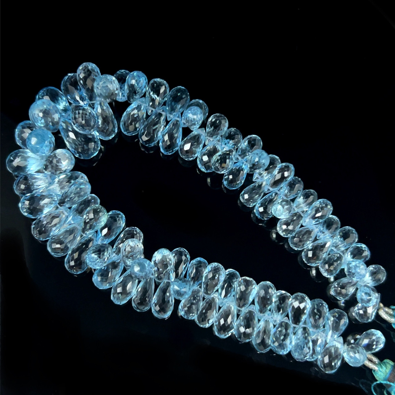 Natural Topaz Briolette Faceted Cut Drop Gemstone Beads | 10x6–13x8mm | FL Clarity | 90 Pcs 270 Carats | 8.75 Inch | Side Drilled | Jewelry Making