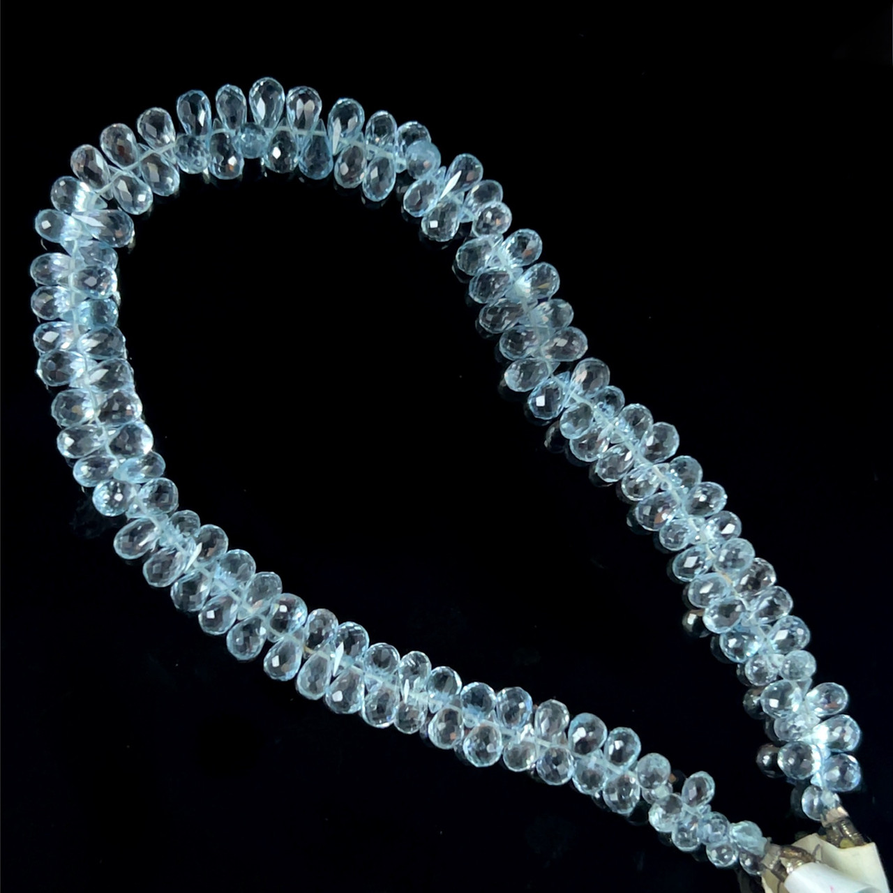 Natural Topaz Briolette Faceted Cut Drop Gemstone Beads | 4x3,5x3mm | Top Sky Blue Color | FL Clarity | 137 Pcs 62 Carats | 8.5 Inch | Side Drilled | December Birthstone For Necklace Making