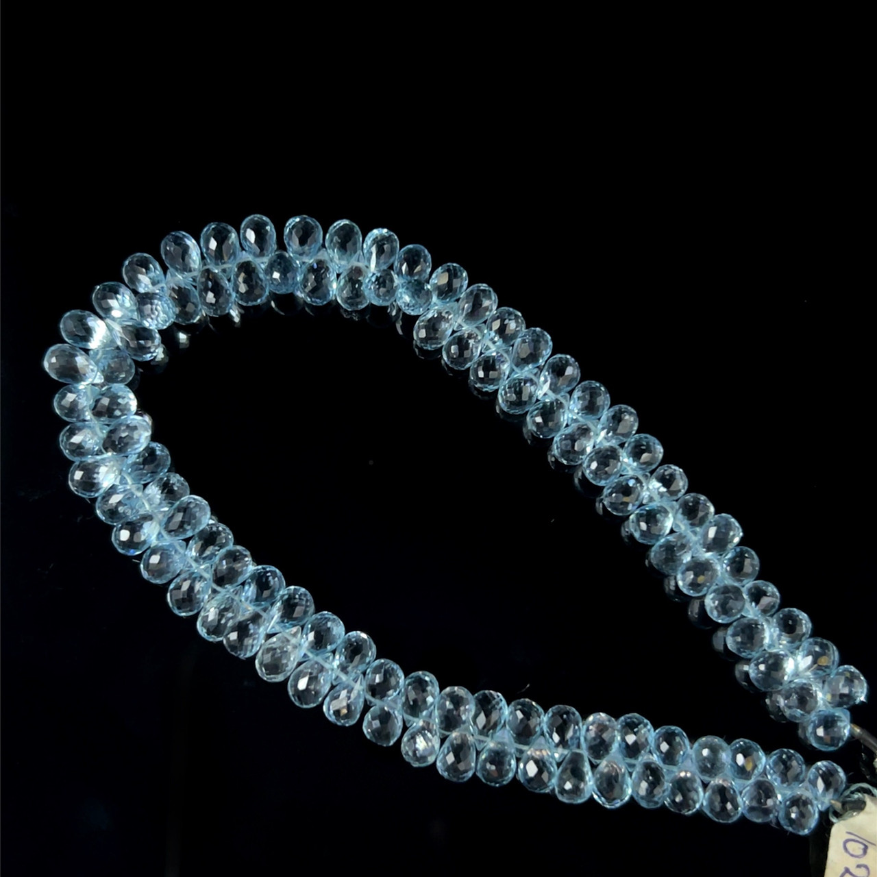 Natural Topaz | Briolette Faceted Cut | Drop Gemstone Beads | 6x4,7x4mm | FL Clarity | 109 Pcs 87 Carats | 8.5 Inch | Side Drilled | Jewelry Making