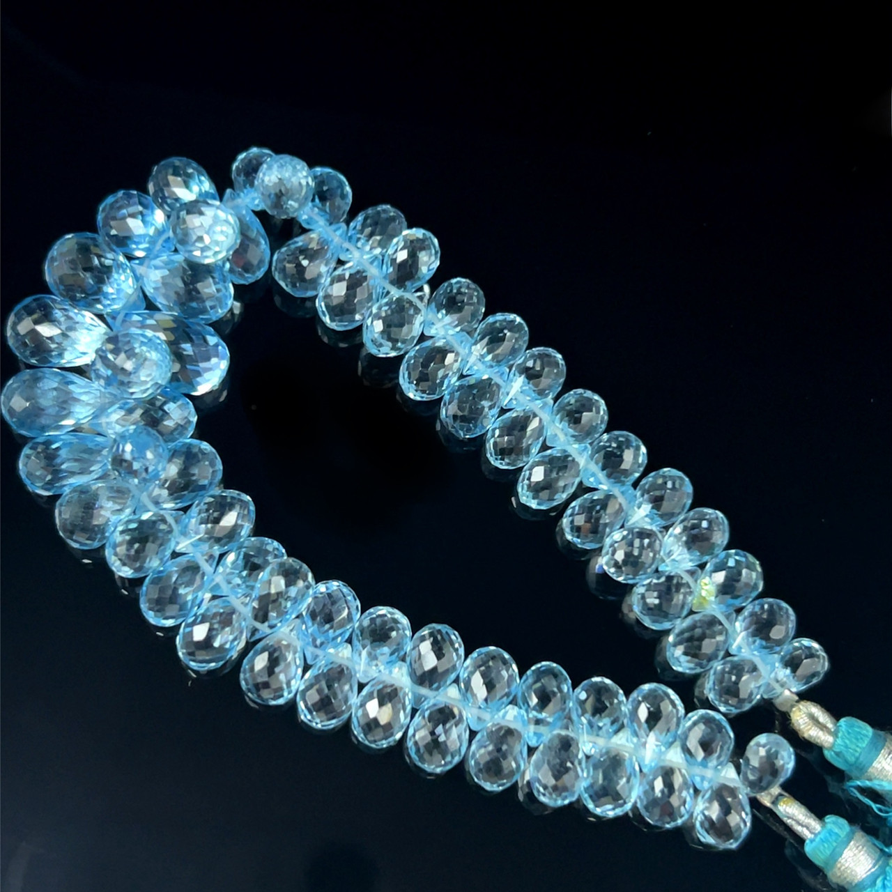 Natural Topaz Briolette Faceted Cut Drop Gemstone Beads | 8x6–12x8mm | FL Clarity | 66 Pcs 145 Carats | 7 Inch | Side Drilled | December Birthstone For Jewelry Making
