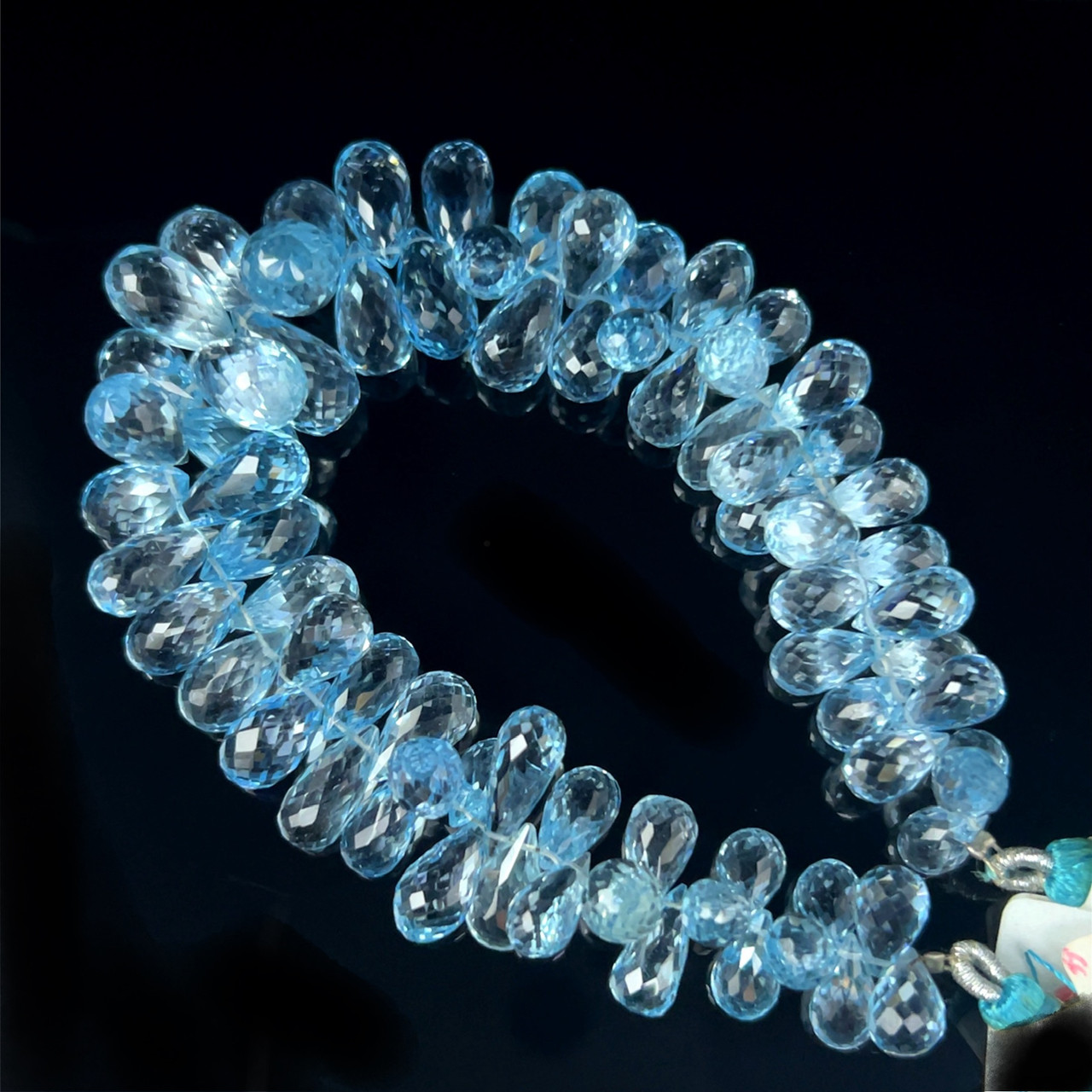 Natural Topaz | Briolette Faceted Cut | Drop Gemstone Beads | 9x6–14x8mm | FL Clarity | 71 Pcs 240 Carats | 7.2 Inch | Side Drilled | Jewelry Making
