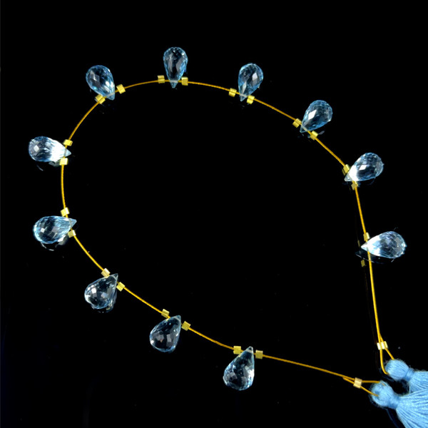 Natural Topaz | Briolette Faceted Cut | Drop Shape | Gemstone Beads | 10x6-11x6mm | 11 Pcs 35 Carats | VVS Clarity | December Birthstone | Jewelry Making