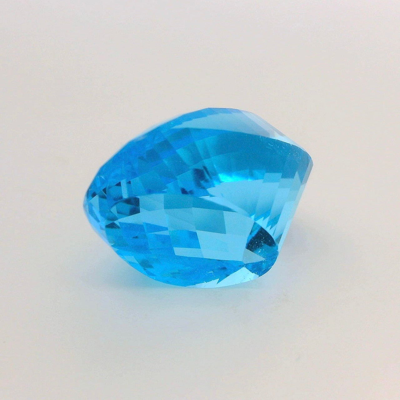Natural Topaz Gemstone Certified Fancy Checker Cut Top Swiss Blue 63.03 Carat Flawless Clarity 28x18mm December Birthstone for Calming Energy, Communication & Confidence