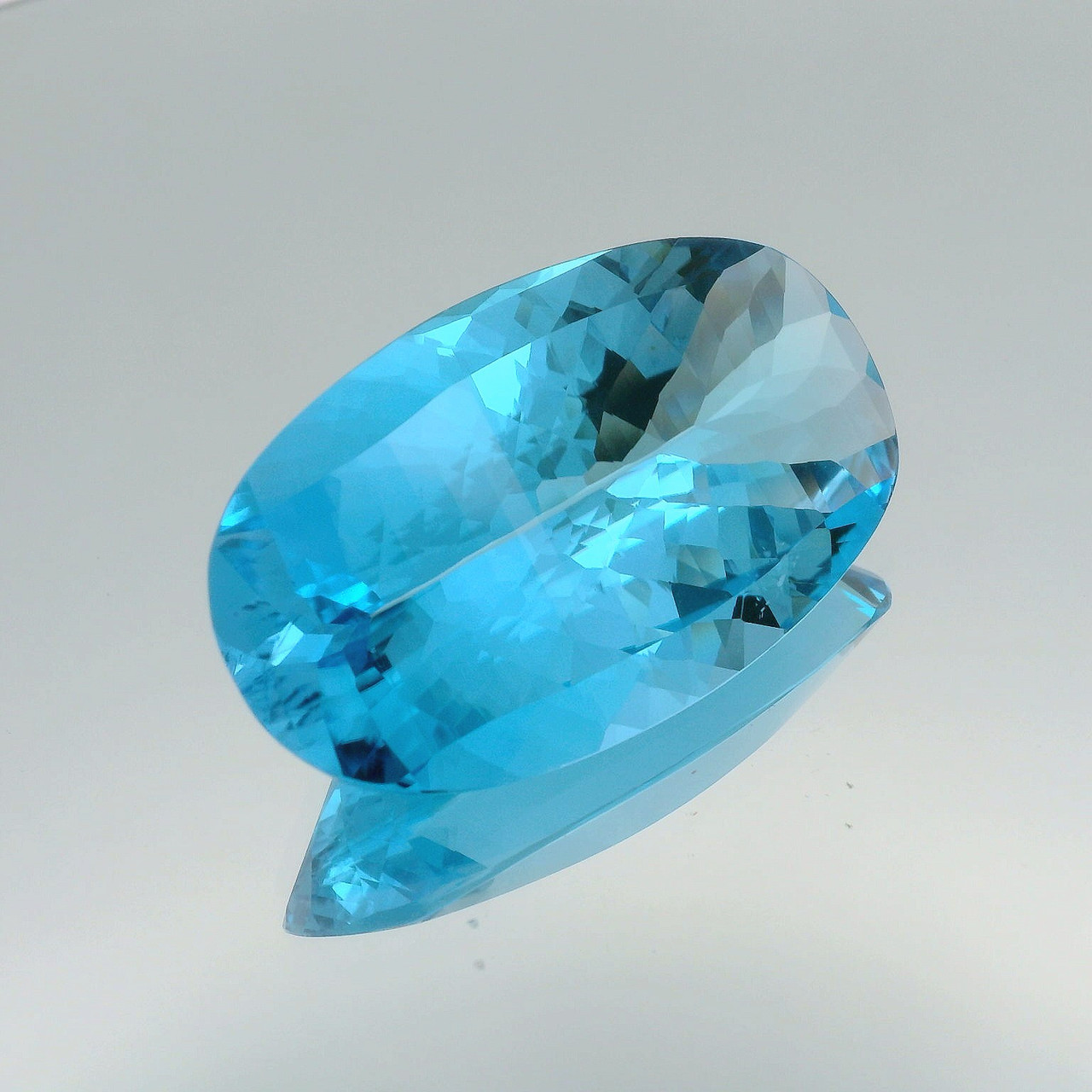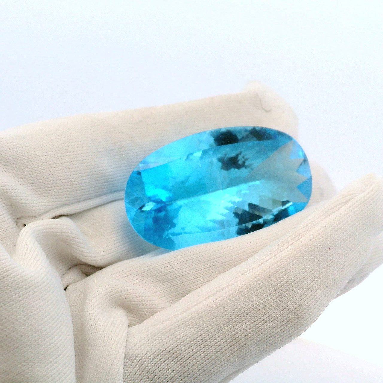 Natural Topaz Gemstone Certified Oval Fancy Cut Top Swiss Blue 101.47 Carat Flawless Clarity 42x24mm December Birthstone to Gain Calmness, Balance & Prosperity