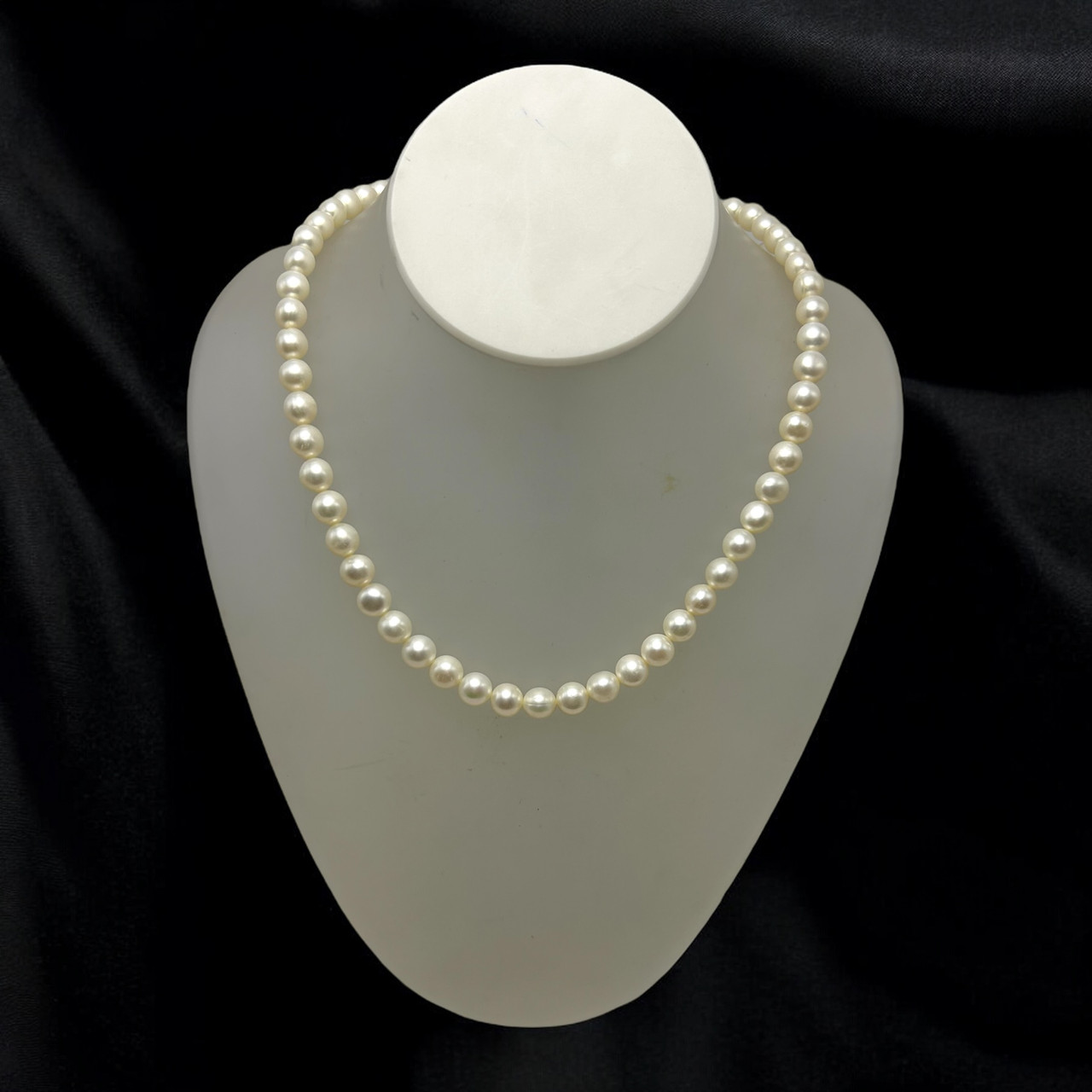 Pearl Chic White Plain Ringed Flower Clasp Necklace