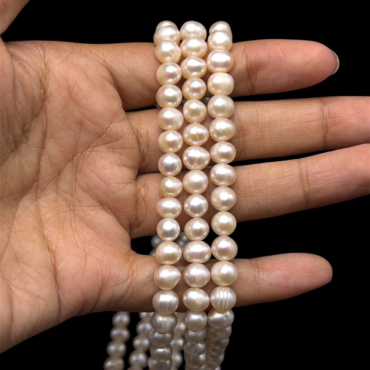 Pearl Freshwater Strand 8x6mm Button Smooth Cut Cream Rose Color June Birthstone