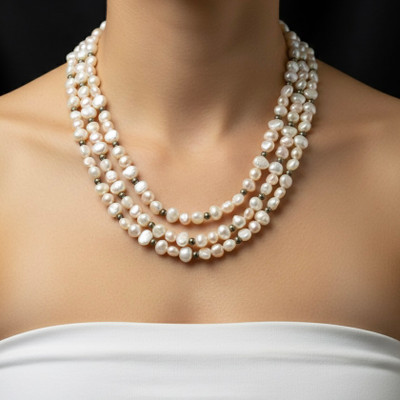 Pearl Multi Layered with Lapis Ball Twisted Beads Necklace