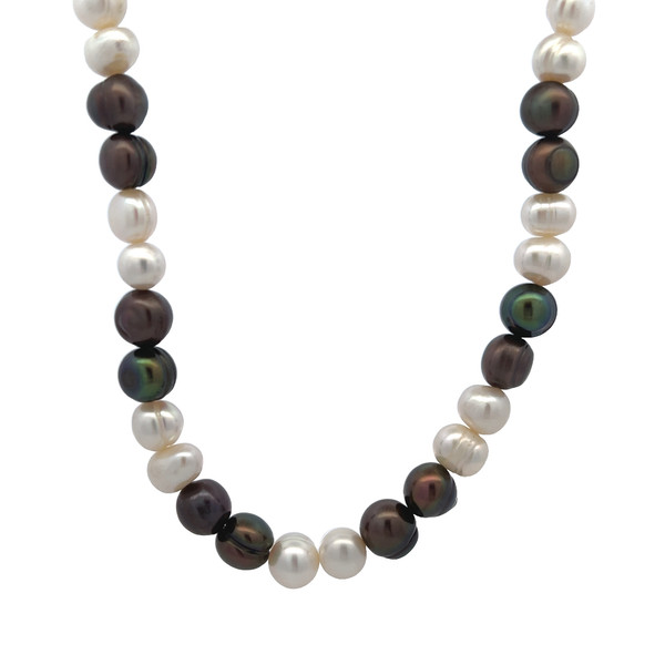 Pearl Two-Tone Plain Ringed June Necklace for Energy and Harmony