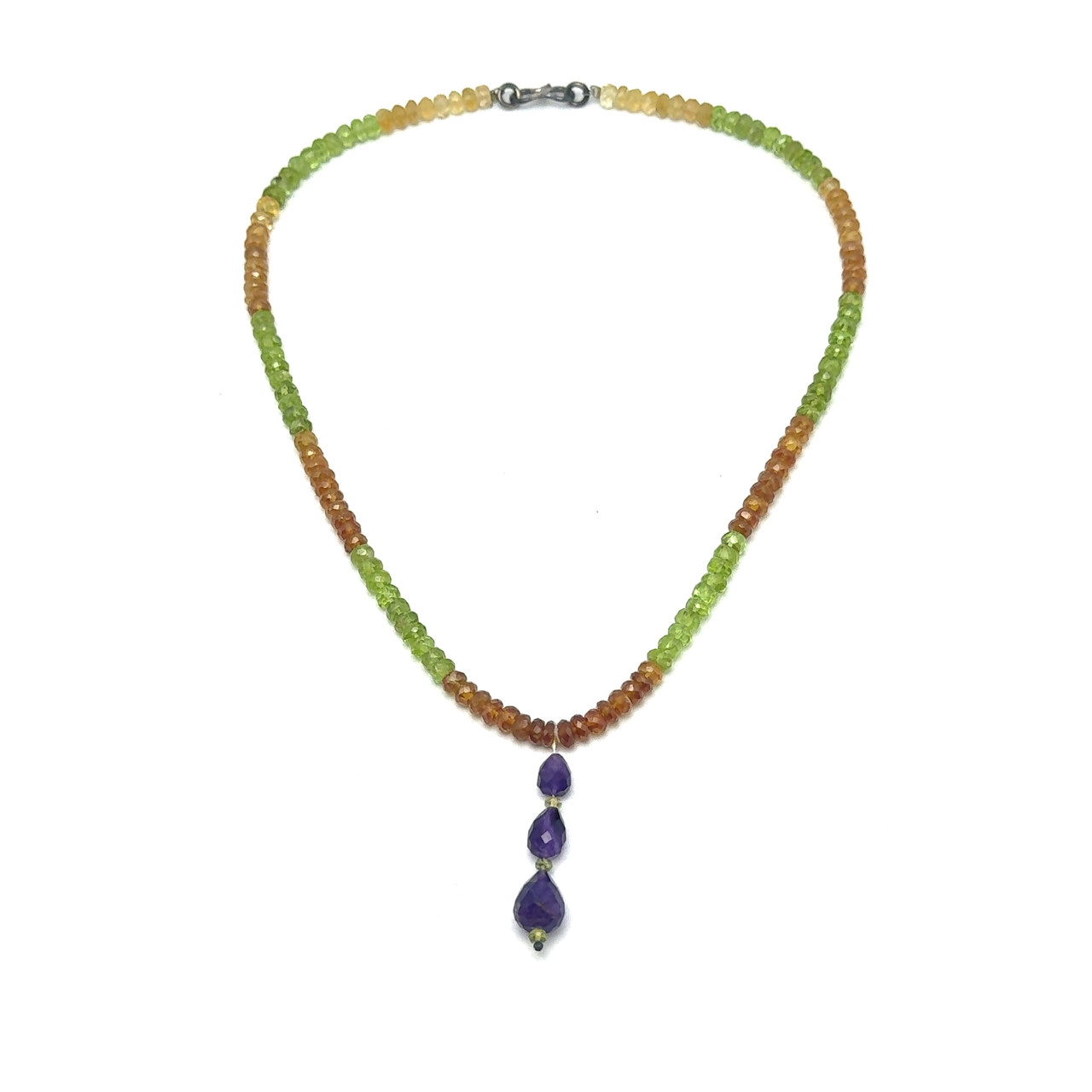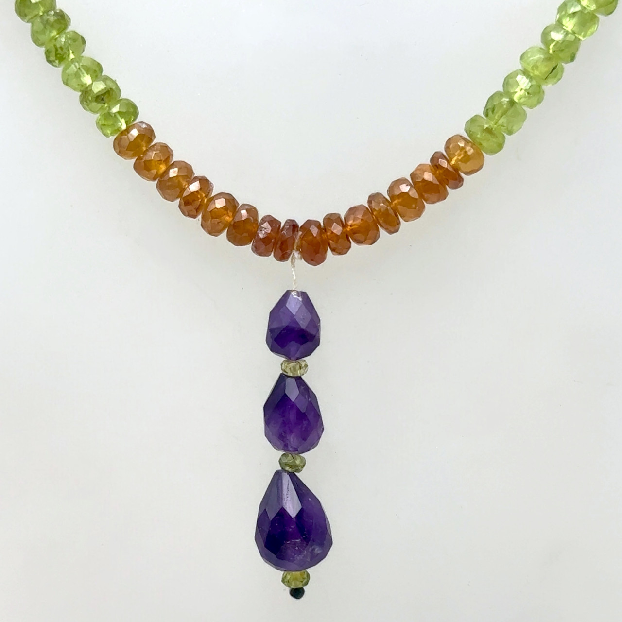 Peridot Natural, Spessartite, Citrine, and Amethyst Necklace