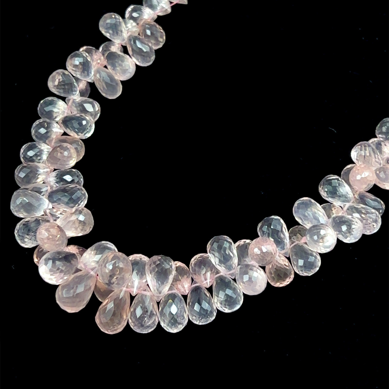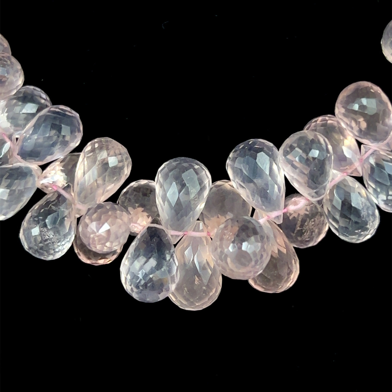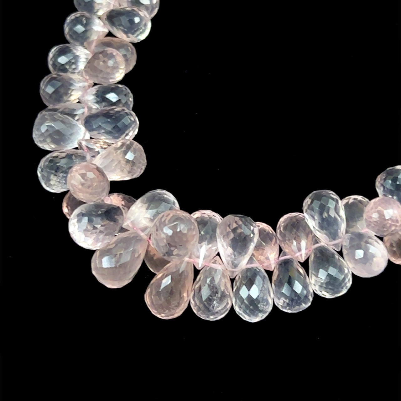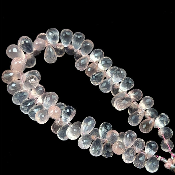 Rose Quartz Natural Drop Briolette Cut Baby Rose Pink Color 11x7-14x8mm Drilled Loose Gemstone