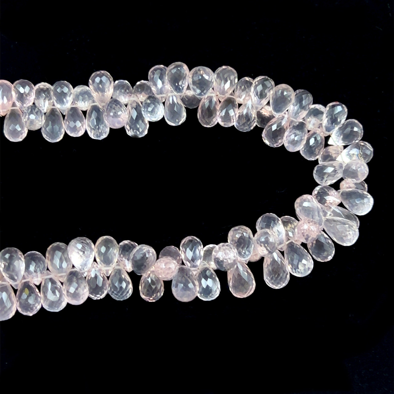 Rose Quartz Natural Drop Briolette Cut VVS1 Clarity 9x7-12x7mm Drilled Loose Gemstone