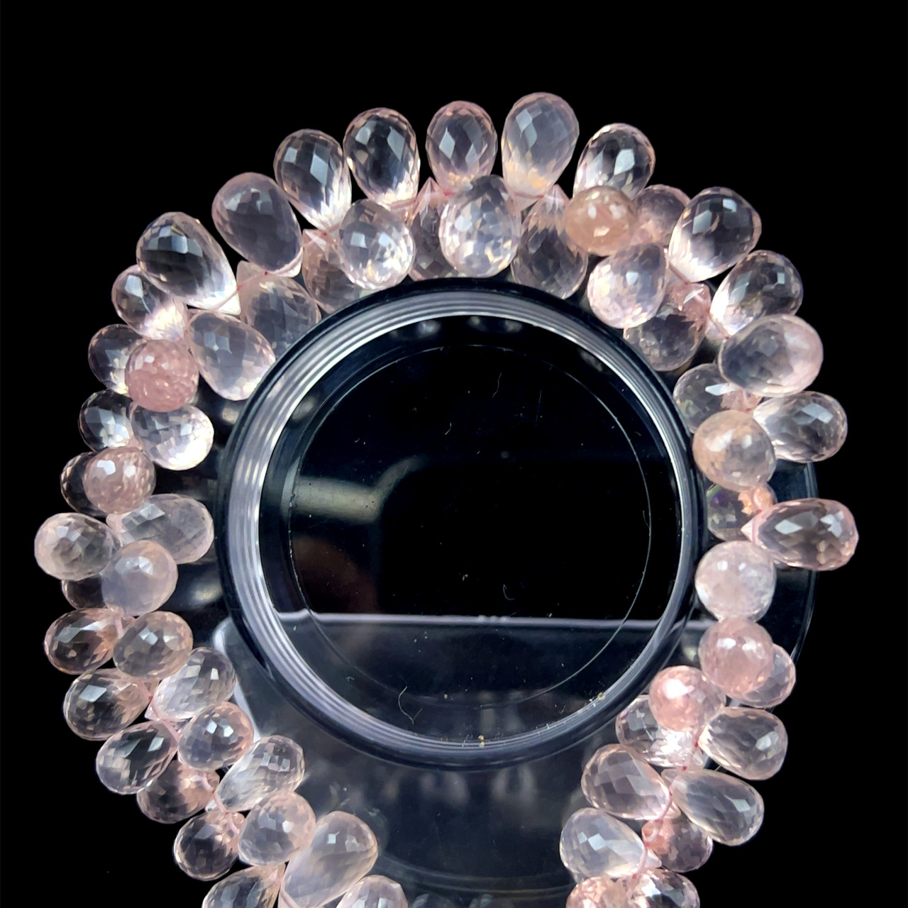 Rose Quartz Natural Drop Briolette Cut VVS1 Clarity Baby Rose Pink Color Drilled Loose Gemstone