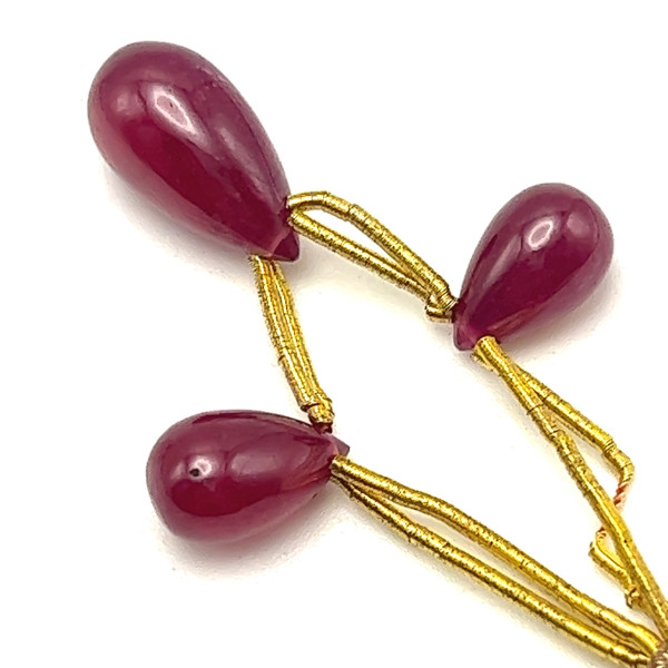 Ruby Natural Gemstone Precious Drop Plain Smooth Cut 9.5x6.3-12.8x8.2mm Carmine Color Drilled Loose July Gemstone