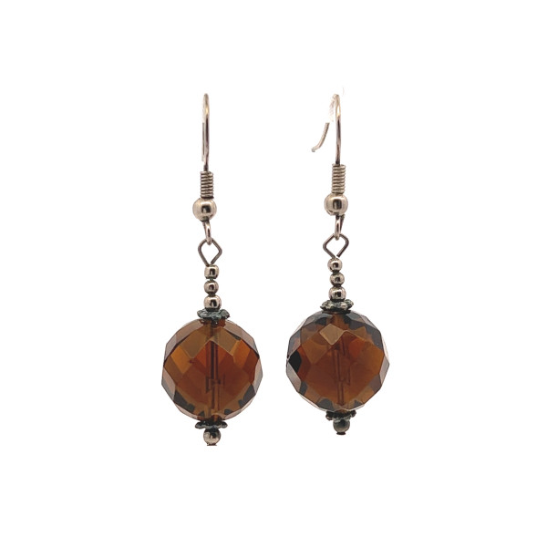 Smoky Quartz Mocha Brown Ball Facet 13.5mm Dangle Gemstone Earrings