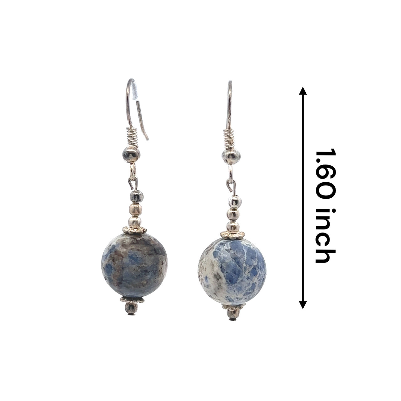 Sodalite 12mm Blue White Ball Plain Dangle Gemstone Earrings