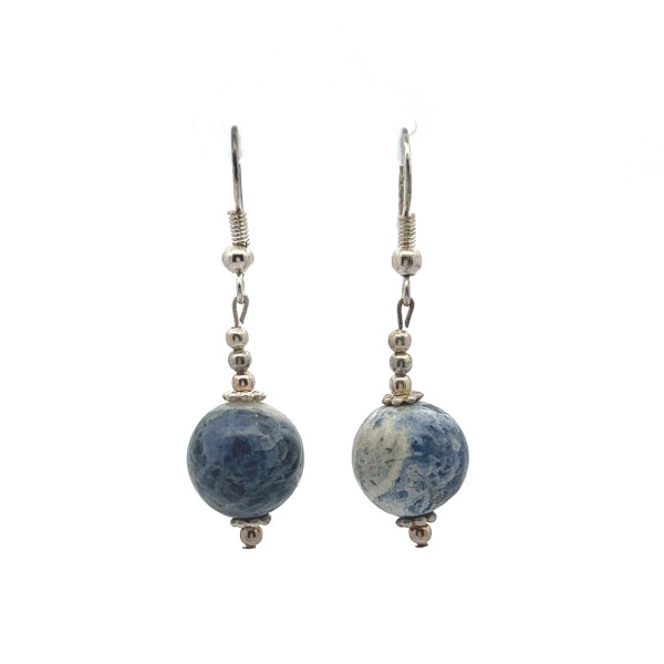 Sodalite Blue White 12mm Ball Plain Dangle Gemstone Earrings