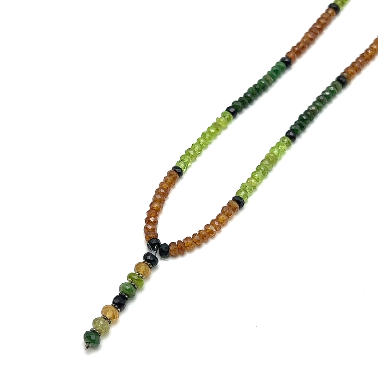 Spessartite Garnet Natural, Peridot, Tsavorite, and Black Tourmaline Necklace