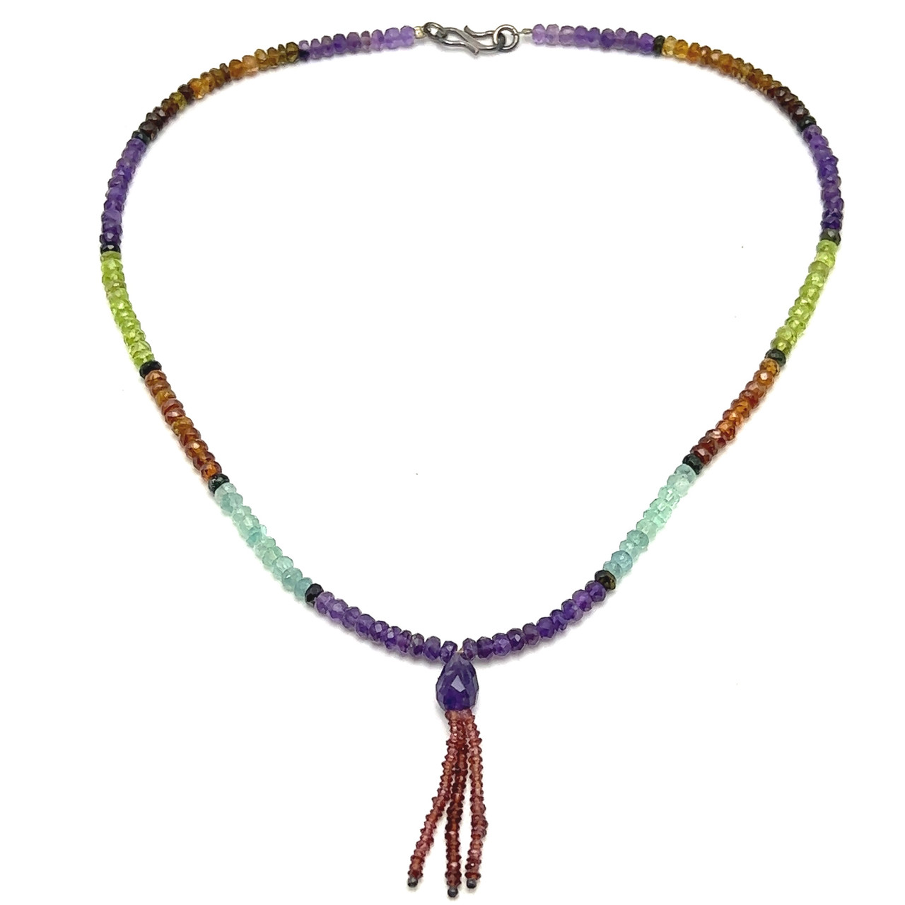 Spessartite Natural, Aquamarine, Amethyst, Peridot, and Garnet Necklace