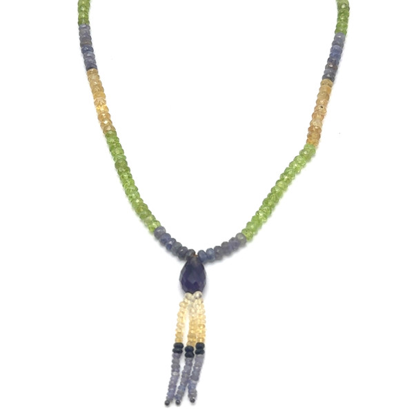 Tanzanite Natural, Citrine, Peridot, Black Tourmaline, and Amethyst Necklace
