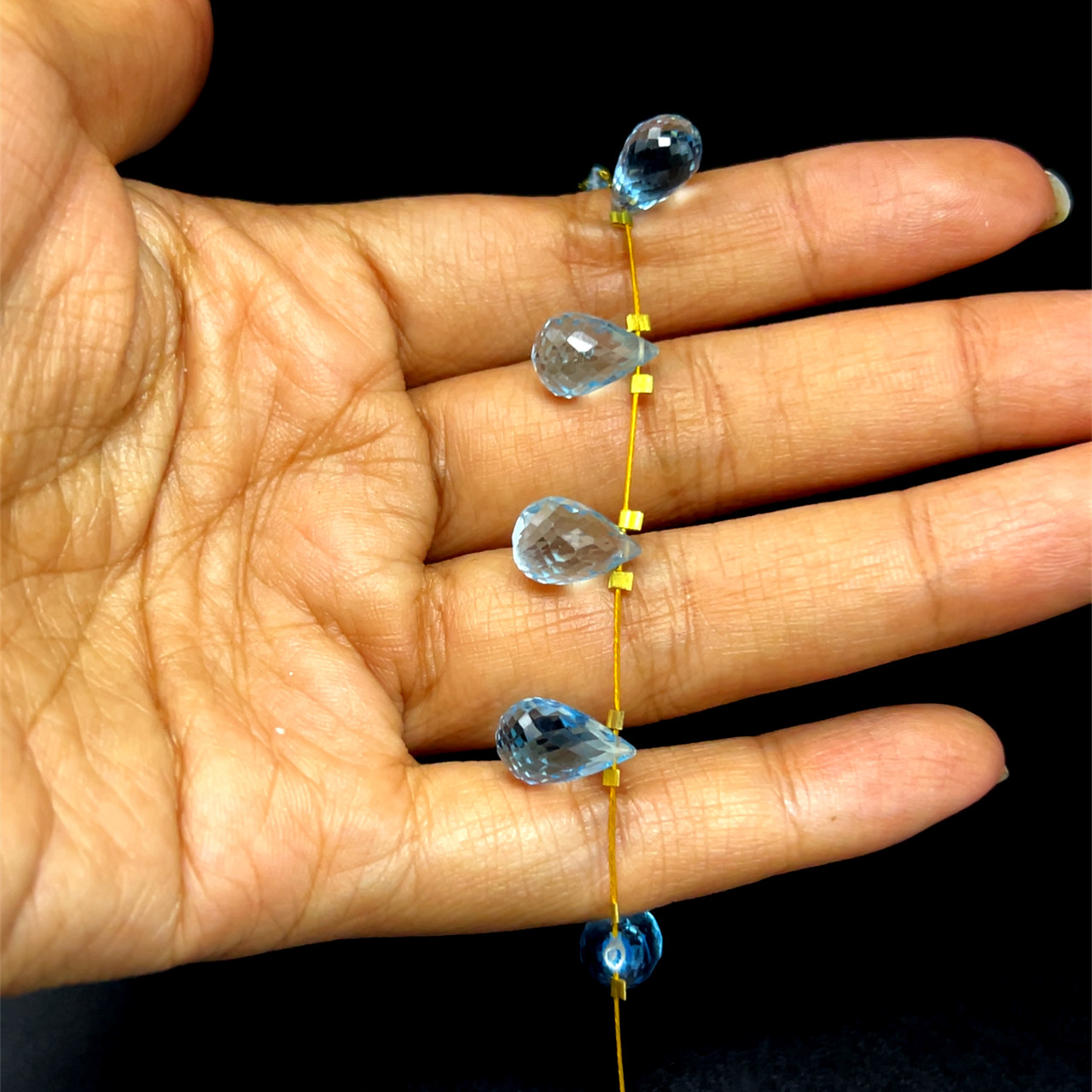 Topaz Natural Drop Briolette Cut 11x6-12x7mm VVS Clarity Top Sky Color Side Drilled Loose Gemstone