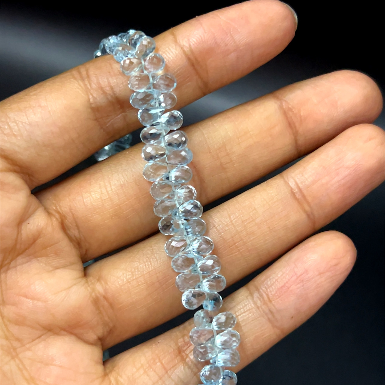 Topaz Natural Drop Briolette Cut 5x3mm Top Sky Blue Topaz Blue Exceptional Quality Drilled Loose Gemstone