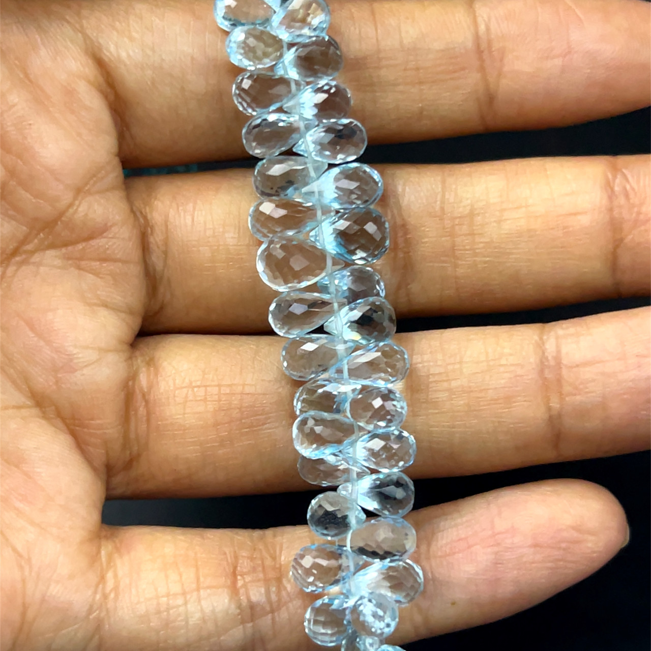 Topaz Natural Drop Briolette Cut 8x6,7x5mm Top Sky Blue Topaz Exceptional Quality Drilled Loose Gemstone