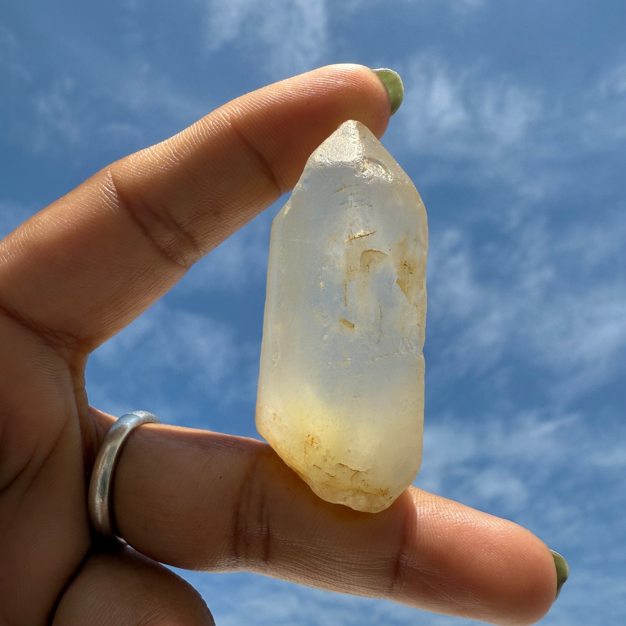 BENEFITS OF THE PRODUCT: White topaz, with its pure and clear energy, embodies clarity, truth, and spiritual growth, promoting mental clarity and enhancing focus in pursuing one's goals. Its energies are believed to stimulate creativity, inspire joy, and bring about a sense of peace and tranquility, fostering balance and alignment with one's inner wisdom.